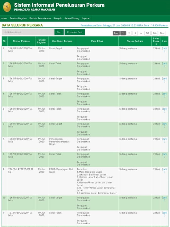 Pengadilan Agama Makassar mendapat Piagam Penghargaan sebagai Juara 1 Impementasi Sistem Informasi Penelusuran Perkara Kategori 1001 - 5000 Perkara Tahun 2018 dari Direktur Jenderal Badan Peradilan Agama Mahkamah Agung Republik Indonesia.